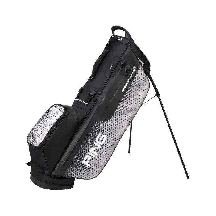Ping Golf: Bolsa de palos de golf Hoofer Monsoon Stand Black/Grey. Bolsa de patas impermeable 100%, muy ligera que cuenta con 5 divisores, 12 bolsillos fácilmente accesibles, uno de ellos grande para llevar la ropa, otro para las bebidas y otro para las bolas de golf y accesorios.